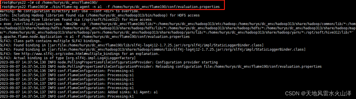 # ./bin/flume-ng agent -n a1 -f /home/hurys/dc_env/flume190/conf/evaluation.properties