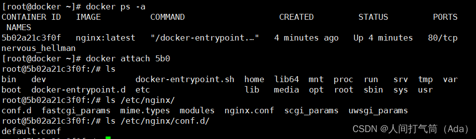 [root@docker ~]# docker run -itd nginx:latest /bin/bash