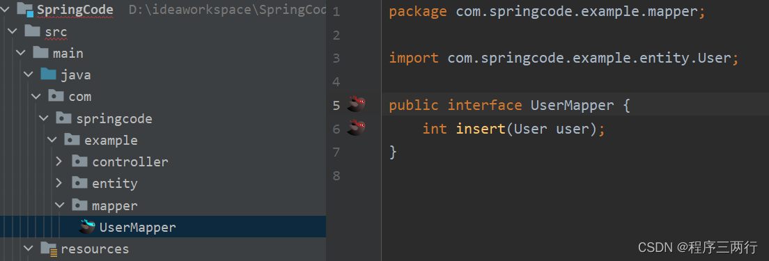 - int insert(User user);