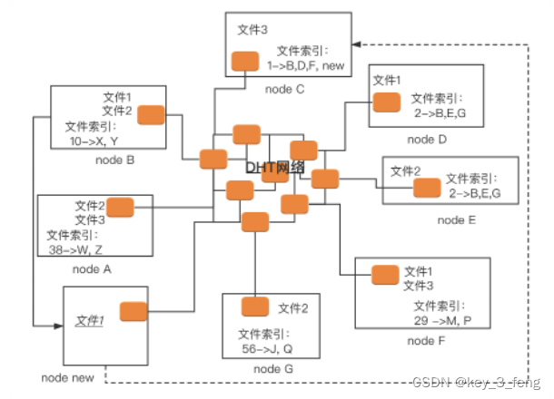 DHT(Distributed Hash Table)的去中心化网络。每个加入这个 DHT 网络的人,都要负责存储这个网络里的资源信息和其他成员的联系信息,相当于所有人一起构成了一个庞大的分布式存储数据库。
