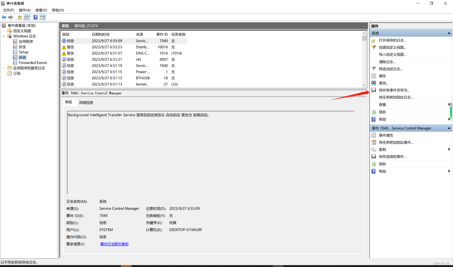 点击事件查看器,windows日志下面可以卡到系统日志和应用程序的日志