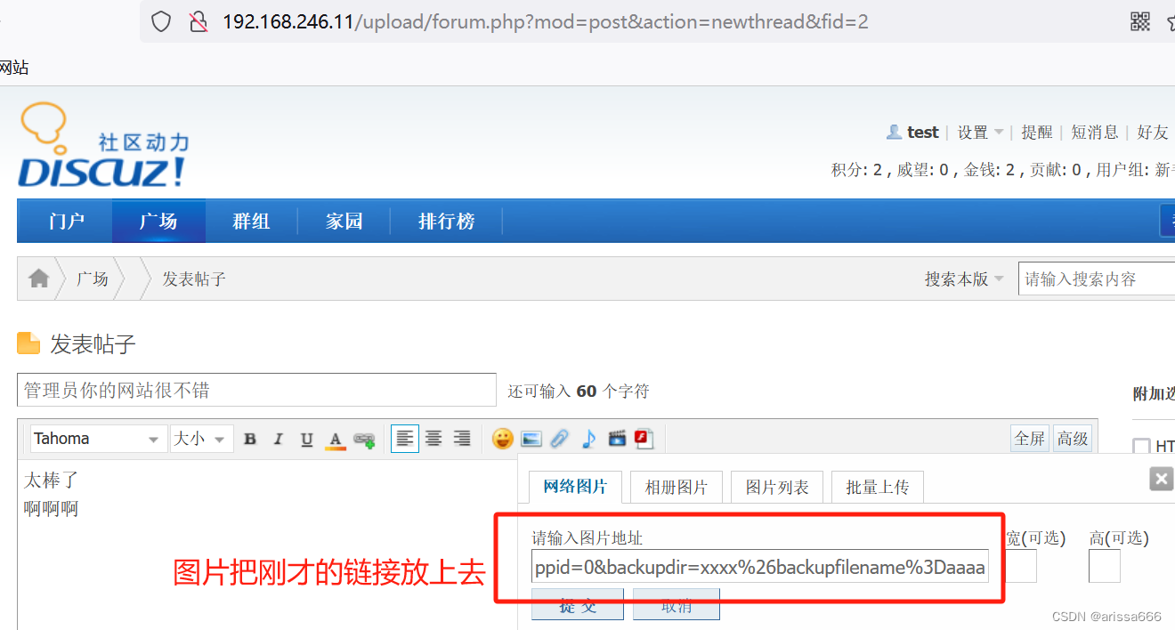 http://192.168.246.11/upload/admin.php是刚才UCenter点备份那个网址