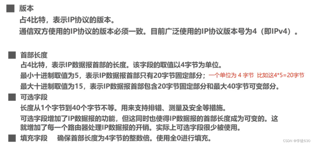 因为首部中的可选字段的长度从1个字节到40个字节不等,那么,当20字节的固定部分加上1到40个字节长度不等的可变部分,会造成首部长度不是4字节整数倍时,就用取值为全0的填充字段填充相应个字节,以确保IP数据报的首部长度是4字节的整数倍