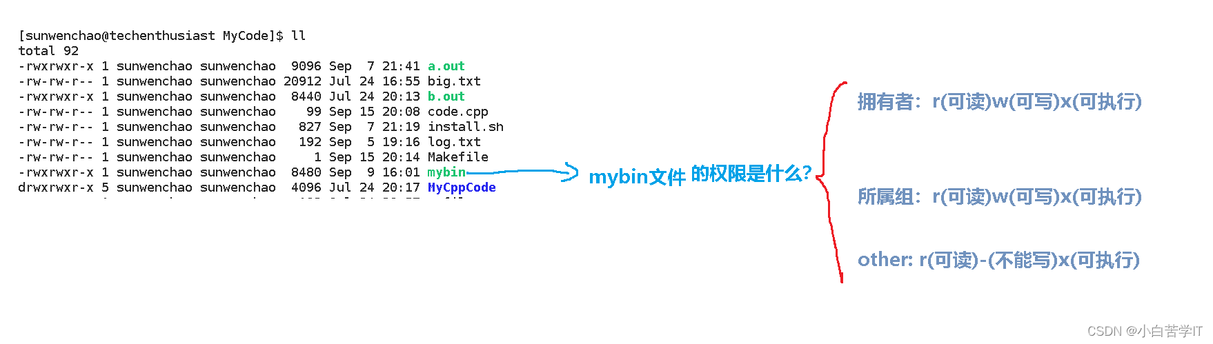 linux中的权限是伴生文件的!我们上面举的例子说到了跟权限有关的是角色和属性,linux的文件也有相对于的角色和文件属性。文件属性有r(读),w(写),x(可执行)。角色所对应的有:拥有者,所属组,other。