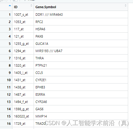 - exprSet$ID <- rownames(exprSet) # 得到表达矩阵,行名为ID,需要转换,新增一列