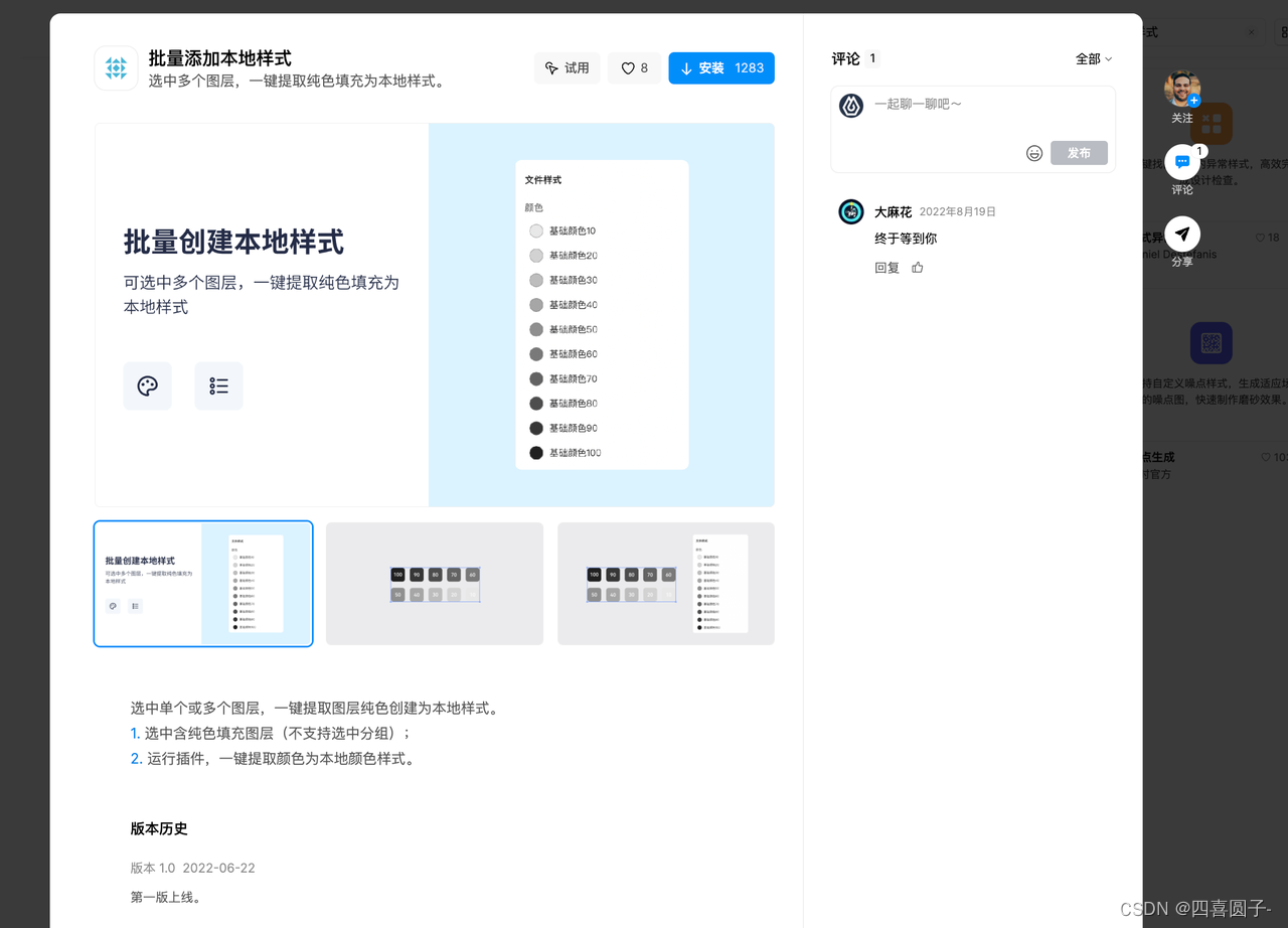 颜色样式插件可以自动生成选中对象的颜色样式,名称与图层保持一致,还可以创建样式组合,方便快速调色。