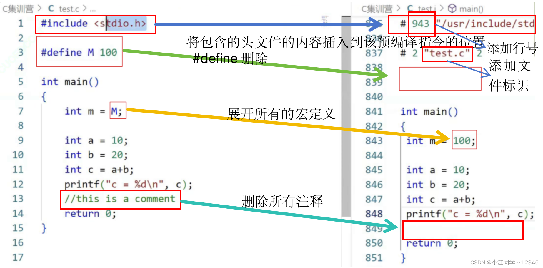 • 将所有的 #define 删除,并展开所有的宏定义。