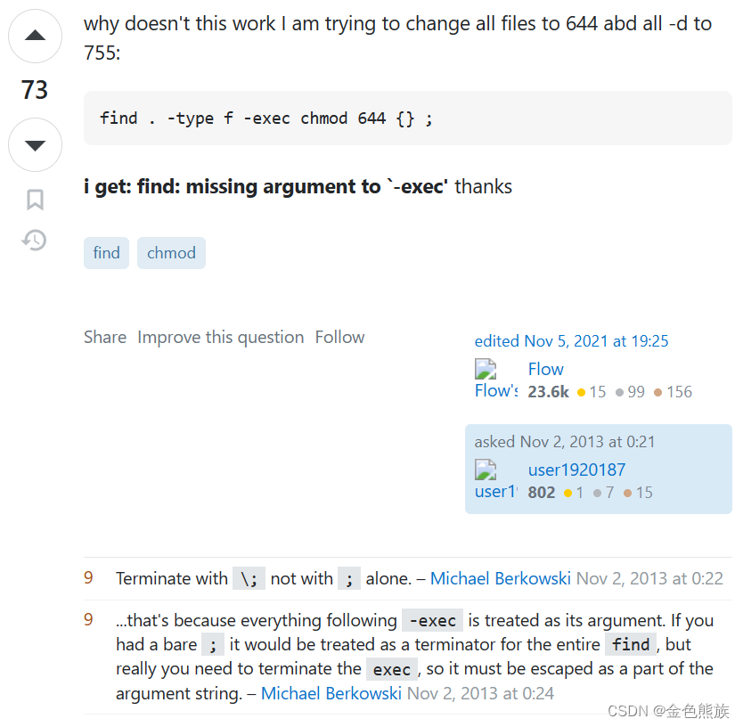 \;的意义见find . -type f -exec chmod 644 {} ; - Stack Overflow