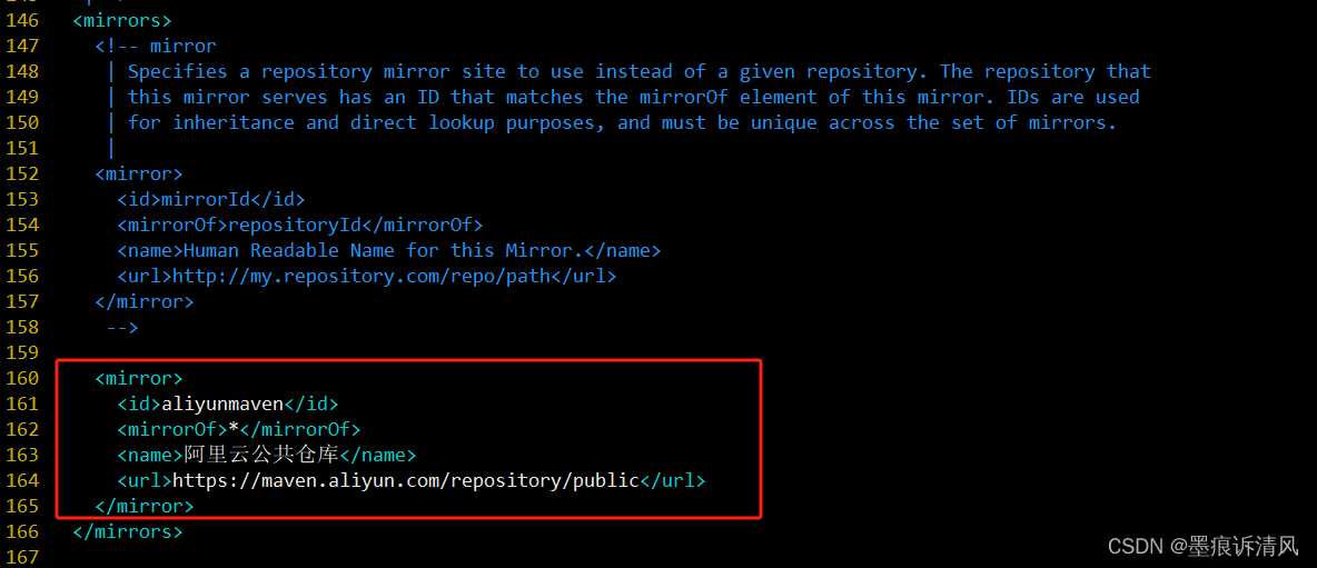 修改maven根目录下的conf文件夹中的setting.xml文件中的mirrors下添加mirror标签