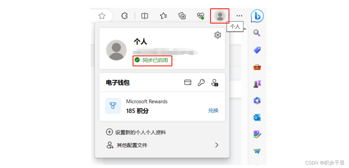 执行完 【2.1.1步骤】后, 点击右上角的 “个人” 重新登录 Edge 账号,可以看到是能够登录成功的。