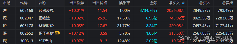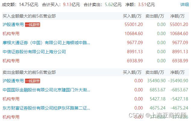 ③张江高科(600895),净额买入2.23亿元,所属板块:房地产开发。上榜原因:日振幅值达15%的证券。