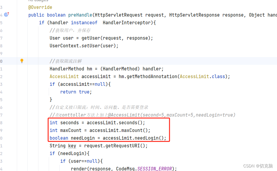 Spring中AOP的概念将在上面的代码中体现的淋漓尽致,首先是if判断是否继承自HandlerInterceptor,然后从request中获取token,进而得到当前的用户,得到用户后与ThreadLocal进行绑定,Threadlocal的底层是一个Map的结构。