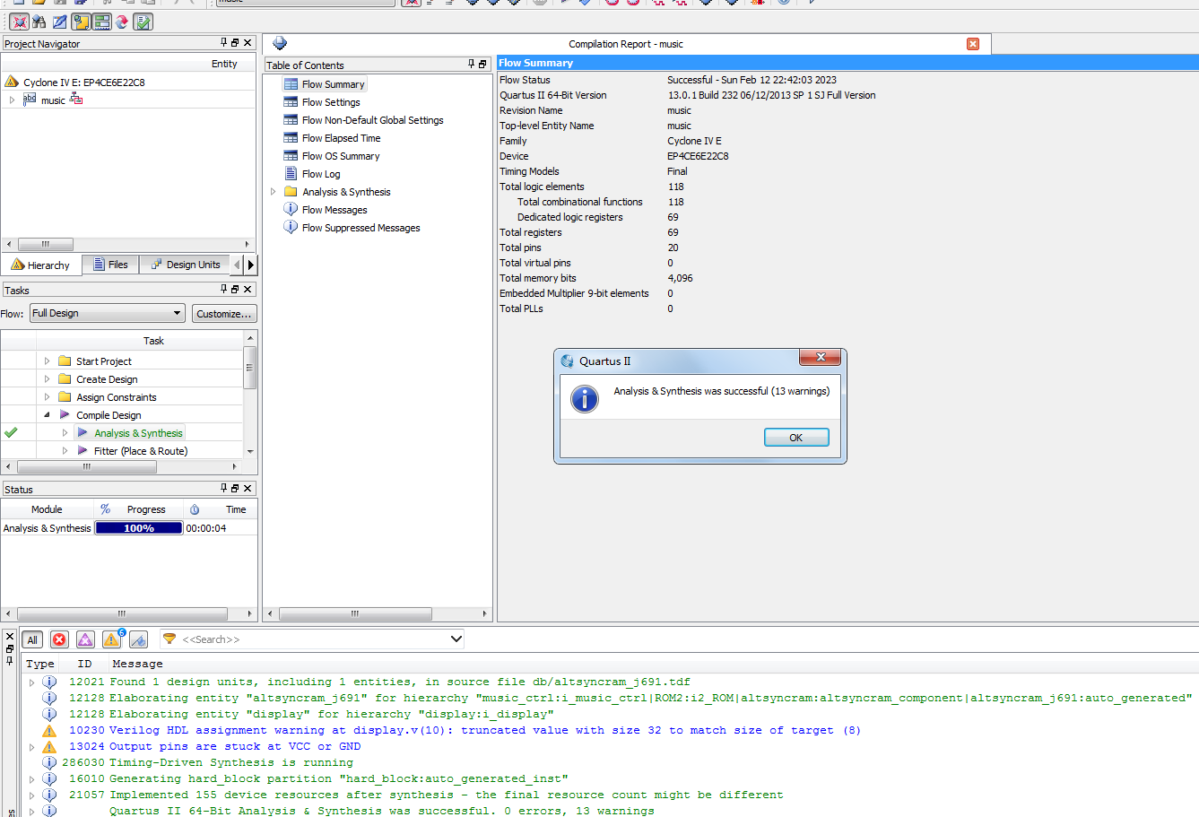 设计音乐播放器,要求至少包含2首歌曲,使用按键切换歌曲,使用开发板的蜂鸣器播放音乐,使用Quartus内的ROM IP核存储音乐文件,