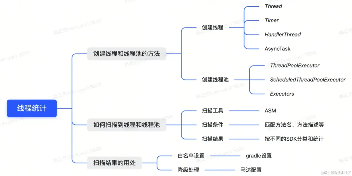 要扫描到创建线程池的类名,你需要使用ASM的访问者模式(Visitor Pattern)来遍历字节码中的方法和指令。在遍历过程中,当遇到创建线程的指令(如:new java/util/concurrent/ThreadPoolExecutor)时,就可以获取到创建线程的类名。