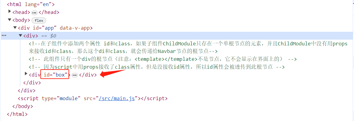 - <ChildModule id="box" class="aaa" @click="handelClick()">ChildModule>