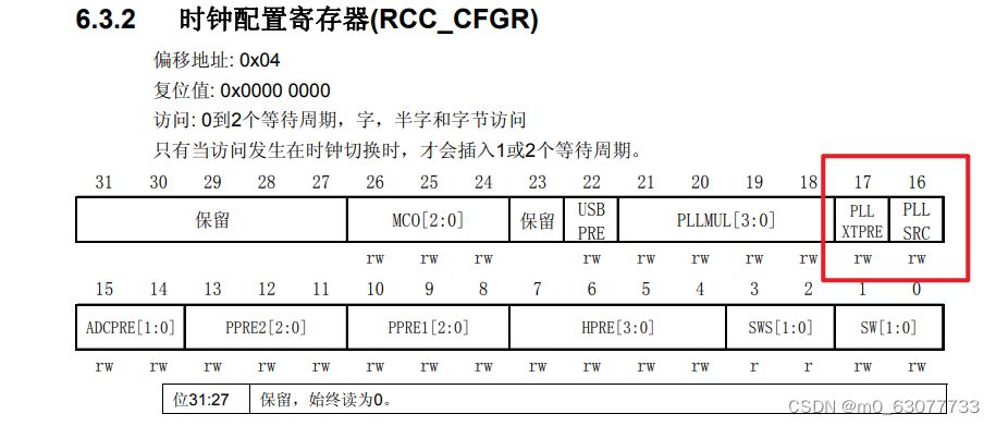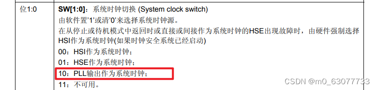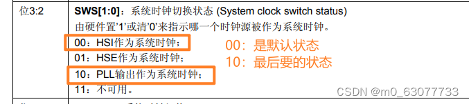 - RCC_CF_SWS_PLL=rRCC_CFGR & (0x03<<2);//读出bit2-bit3