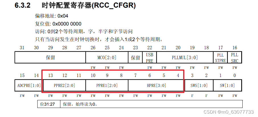 - //HPRE【AHB】:对应bit4-bit7:不分频(000)