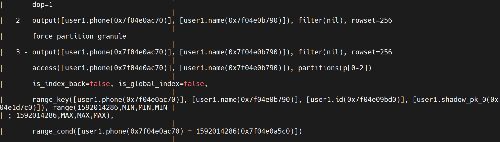 delimiter ;obclient [tpch]> explain extended select phone ,name from user1 where phone = 1592014286;
