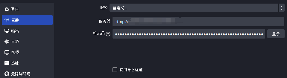 本文档以安装 OBS 推流为例,操作步骤如下说明。假设准备好的推流地址为: