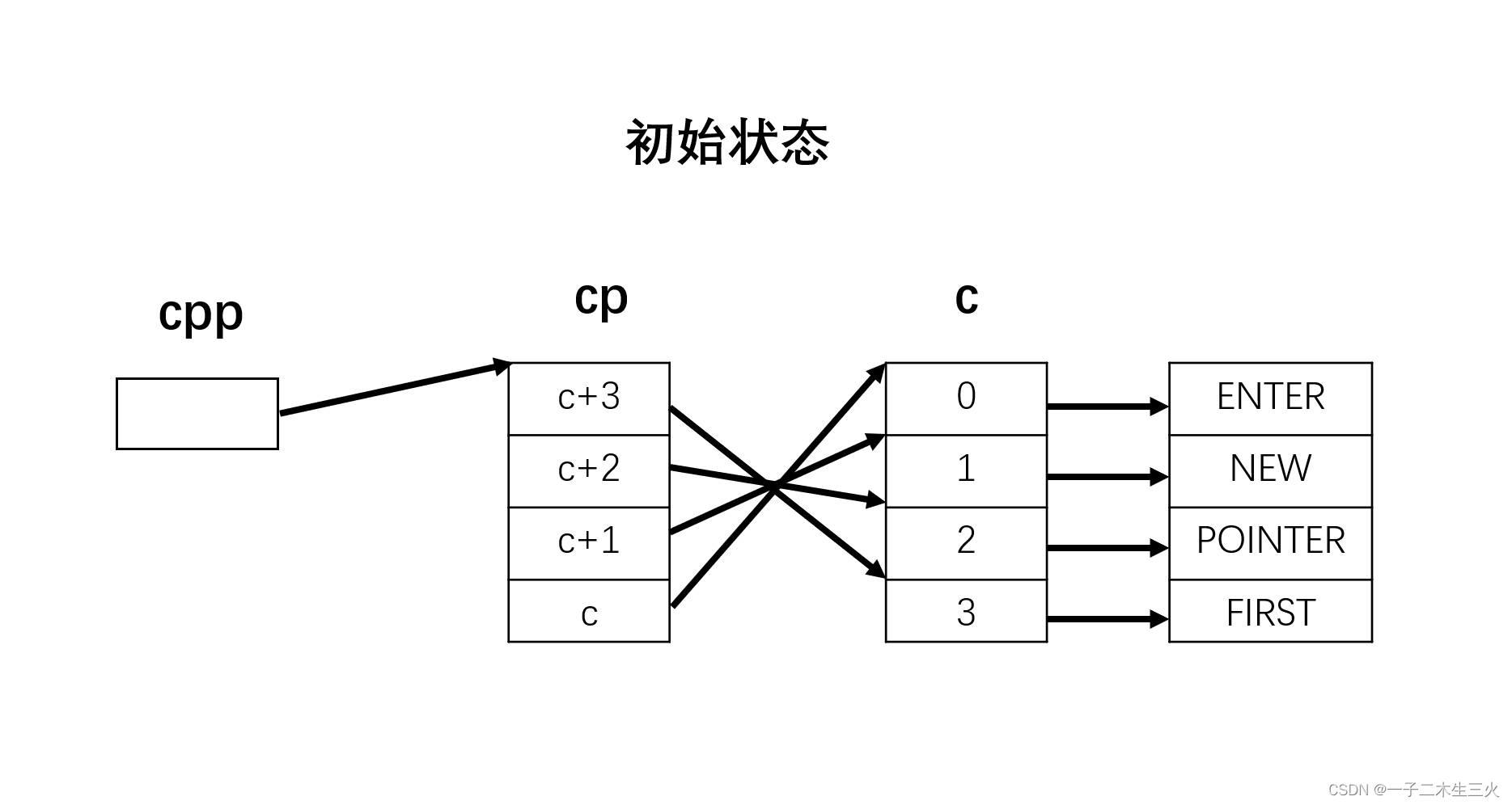 先算自增操作符,所以cpp移到下一位,然后按照连线就可以推出两次解引用后得到的是POINTER
