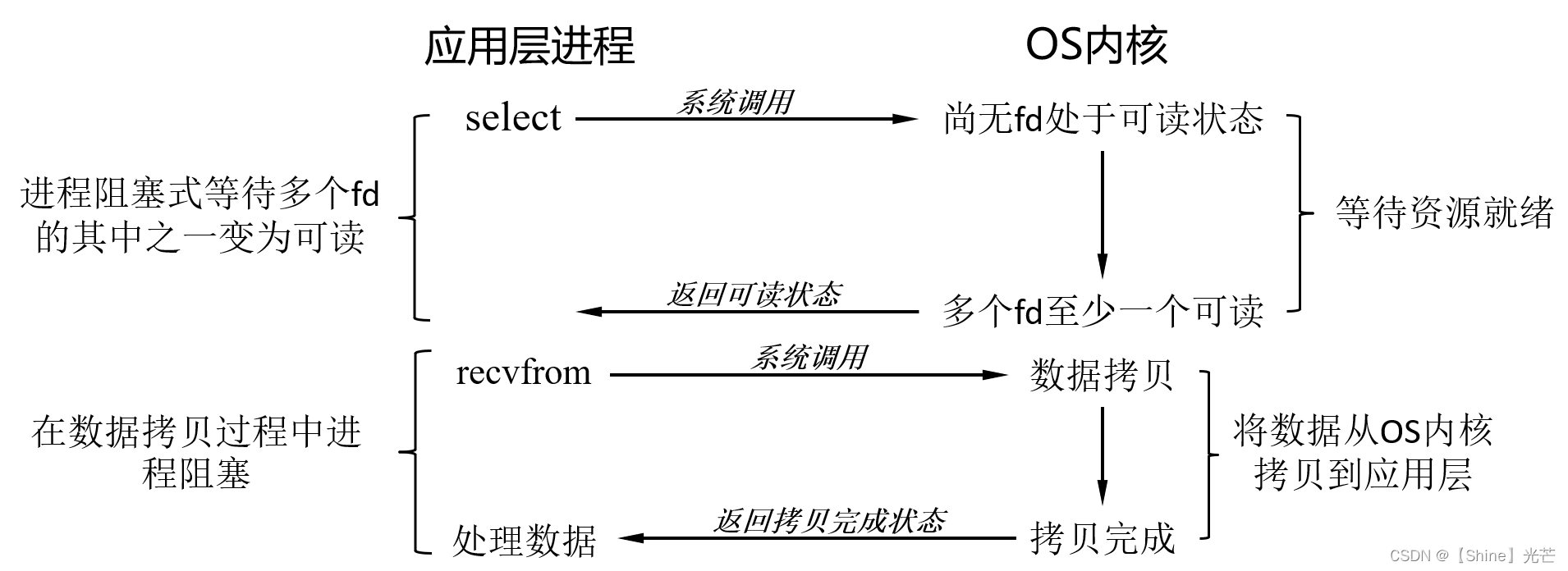 这里以阻塞式读取为例,分析IO操作所进行的工作: