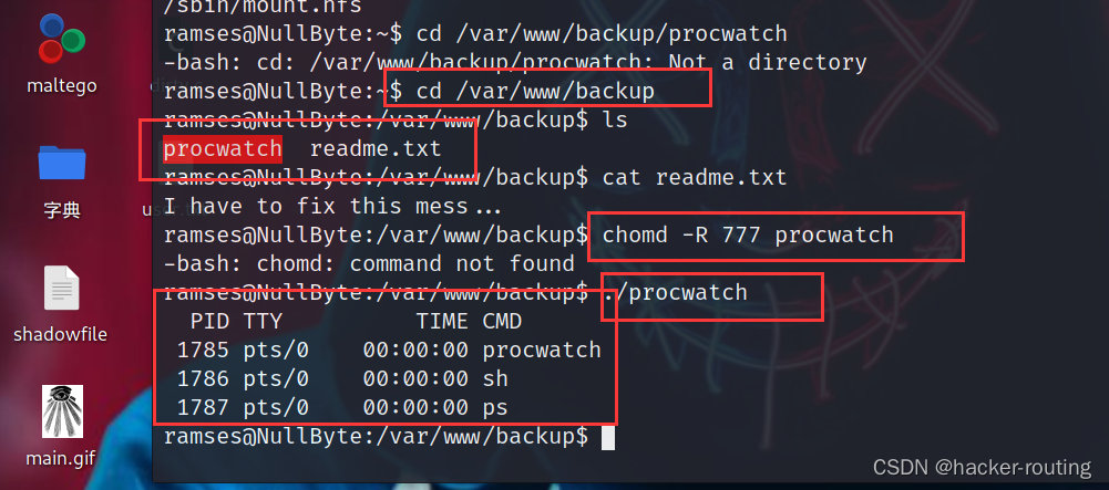 - ramses@NullByte:/var/www/backup$ ./procwatch