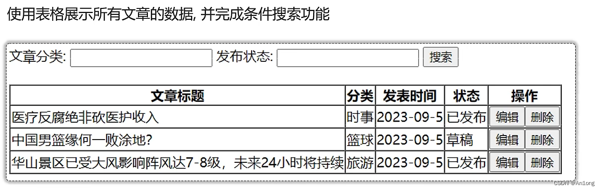 - 文章分类:<input type="text" v-model="searchConditions.category">