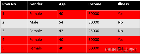 现在我们将看到这些随机数落在桶中的位置,并根据它,我们将制作如下所示的新数据集。