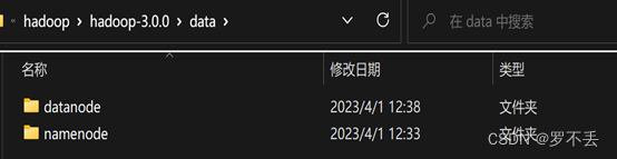 (2)在hadoop3.0.0的目录下创建data文件夹,然后在data文件夹里创建namenode(名称节点)与datanode(数据节点)文件夹,还可以再创建一个tmp(临时目录)文件夹,我这里已经创建了一遍了,只需要创建文件夹就行了,不需要文件