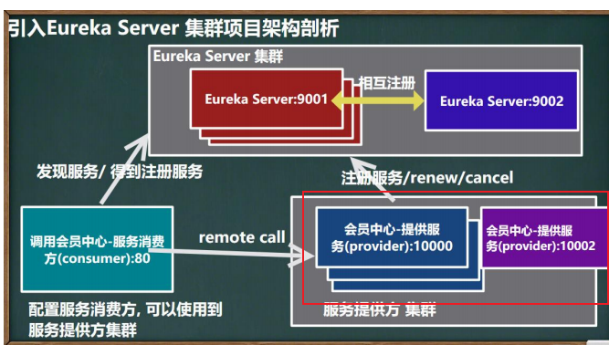 也就是说 Erueka(多个)会把注册的服务,同步到 Erueka 集群上