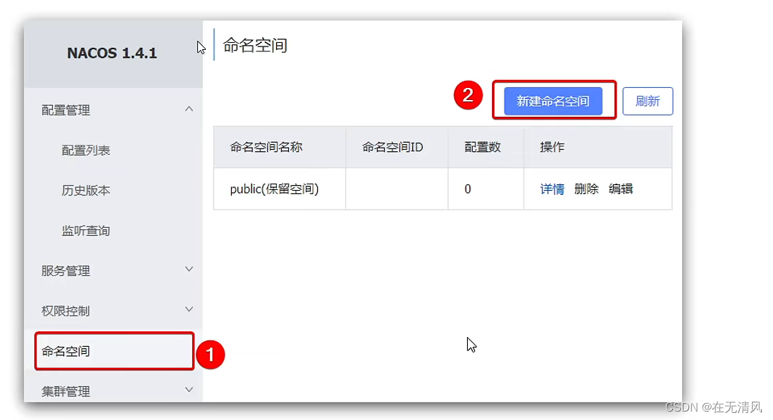 在Nacos控制台可以创建namespace,用来隔离不同环境