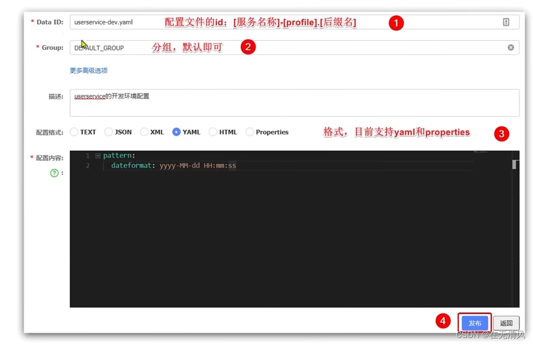 在微服务中添加bootstrap.yml,配置nacos地址,当前环境,服务名称,文件后缀民。这些决定了程序启动时去nacos读取哪个文件