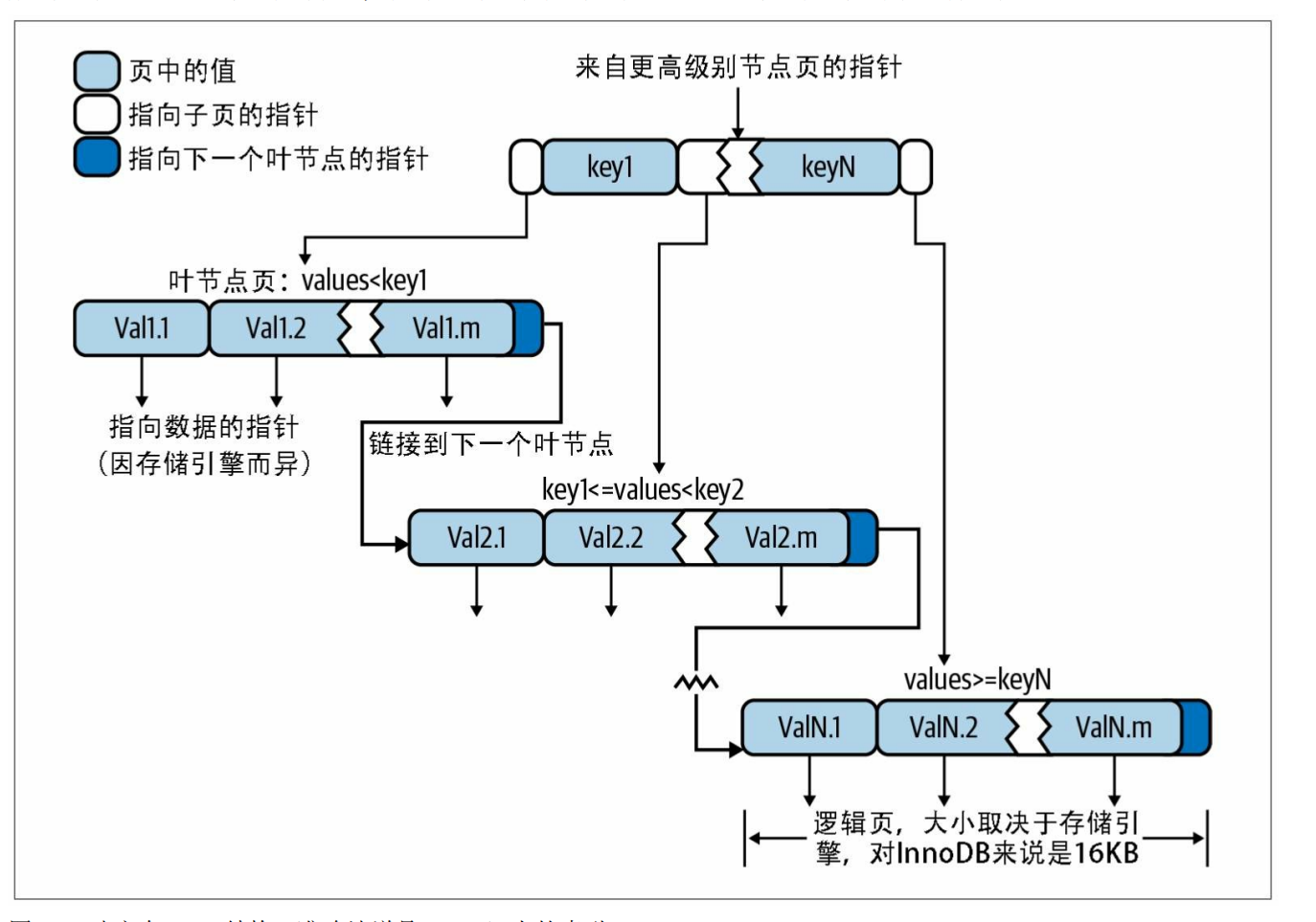 页的值和要查找的值可以找到合适的指针进入下层子节点,这些指针实际上定义了子节点