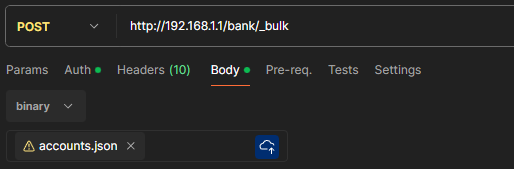 使用 [Bulk API](Bulk API | Elasticsearch Guide [8.12] | Elastic) 来批量插入,没有安装 kibana 也可以用 postman 导入
