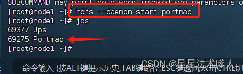 4、启动portmap(HDFS自带的rpcbind功能)(必须以root执行):
