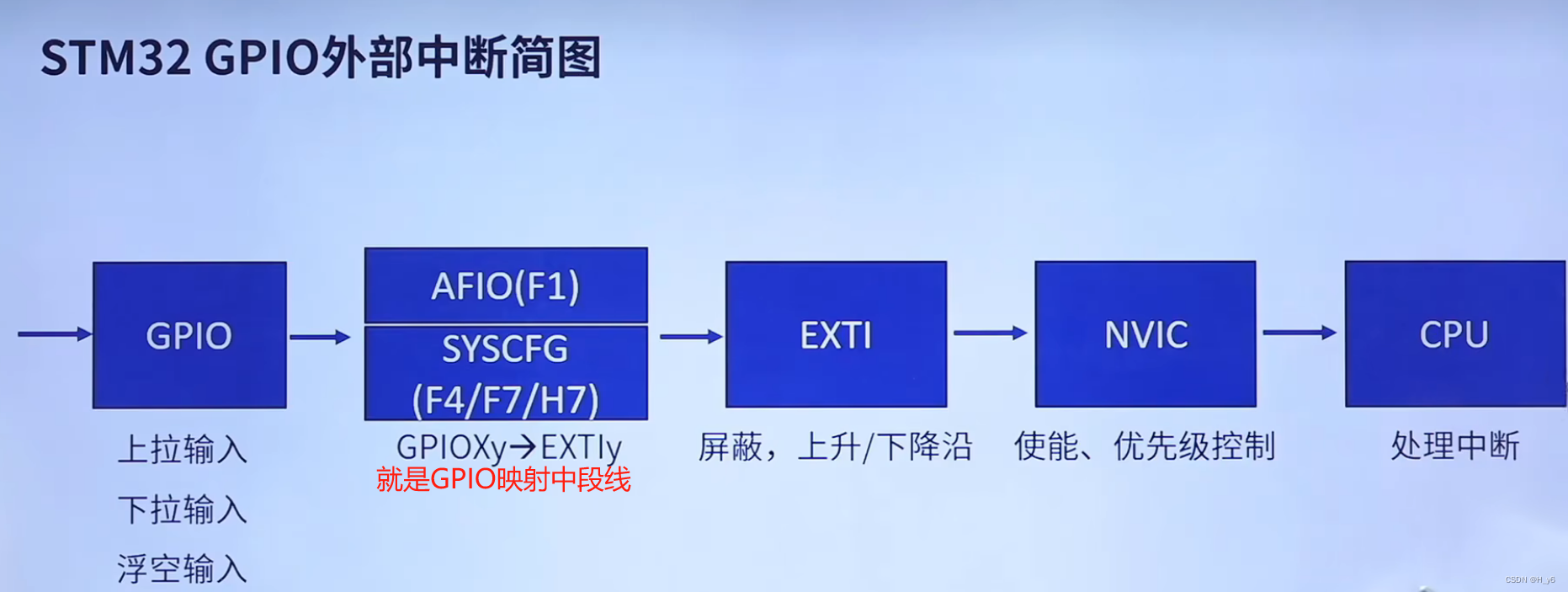 - GPIO_Init.Mode=GPIO_MODE_IT_RISING;//设置为上升沿触发中断
