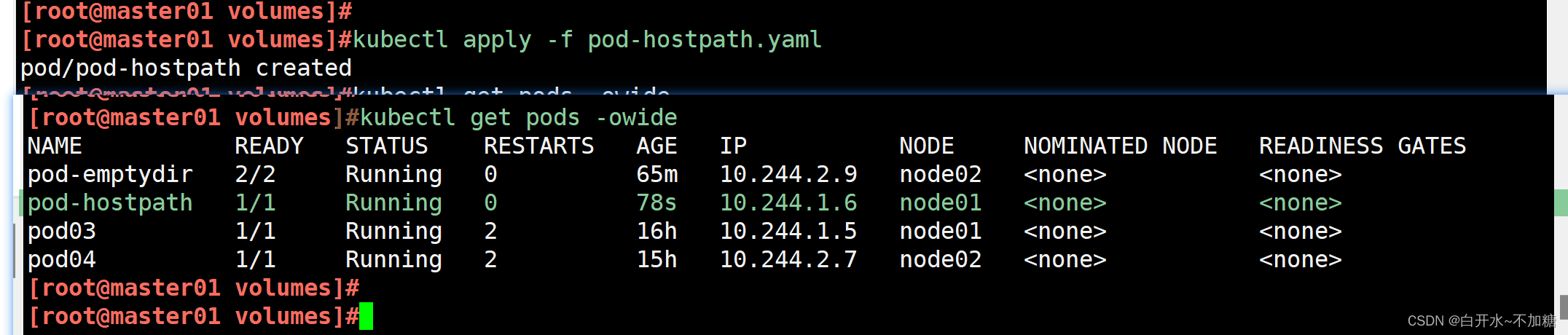 删除pod,再重建,指定到node02节点,验证是否依旧可以访问原来的内容