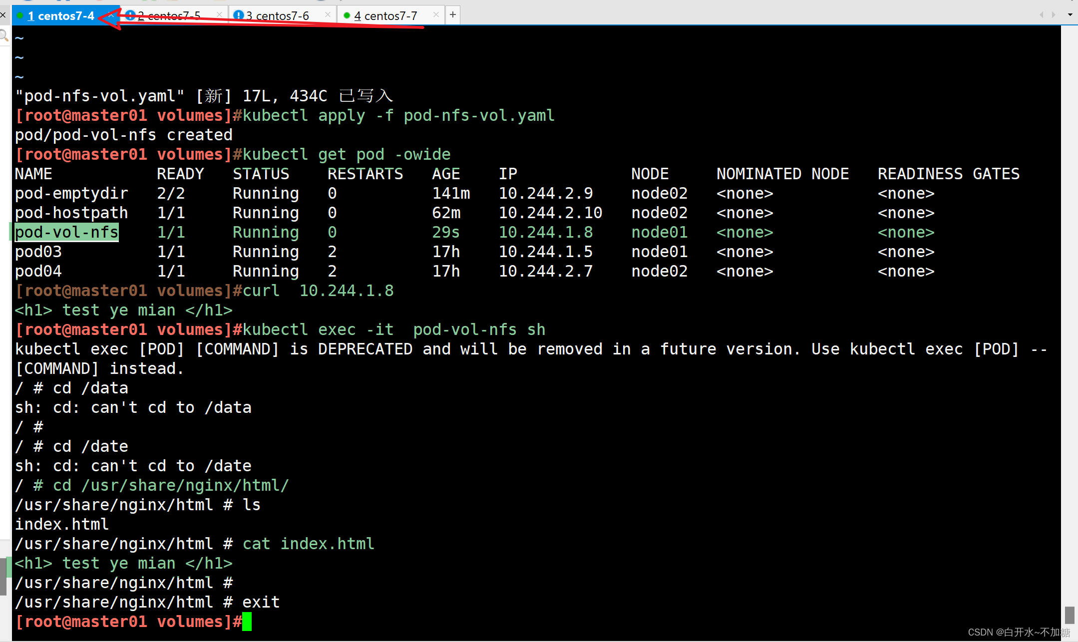 - echo 'node01.zzz.com' > /data/pod/volume1/index.html