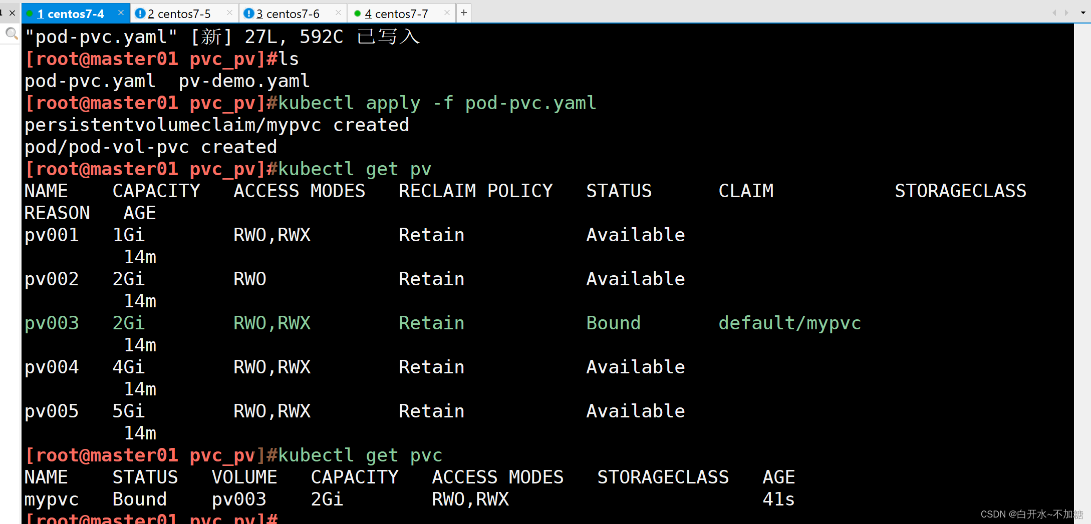 - kubectl get storageclass: 通过 kubectl 获取当前 Kubernetes 集群中所有的 StorageClass 列表。这可以用于确认上一步的 StorageClass 是否成功创建。