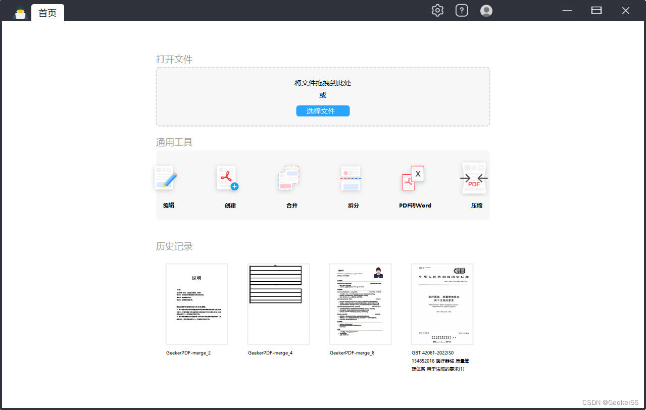 首先,点击下面的按钮将GeekerPDF软件下载到您的Windows 10或11,安装成功后双击软件图标打开。