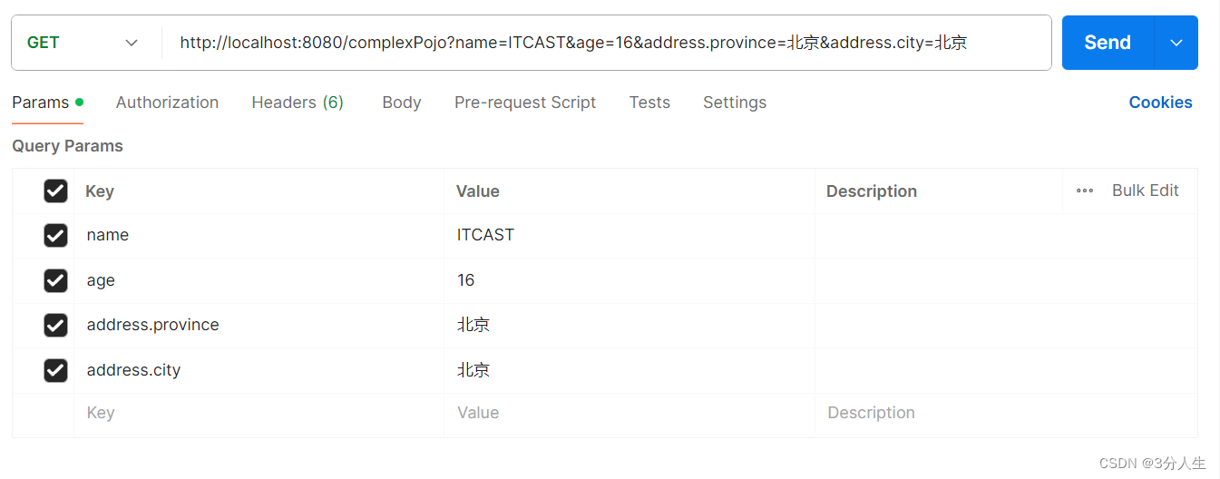 简单参数:参数名与形参变量名相同,定义形参即可接收参数。