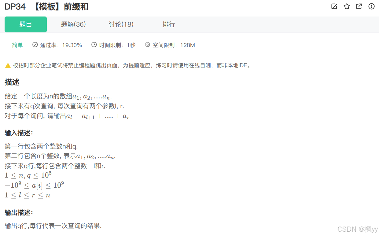 如果我们用暴力解法,每次都要遍历一遍数组,一共遍历q次,这样时间复杂度太高,这时候我们构造一个前缀和数组,将1 - n区间内各区间的和存入进去,需要前n项和直接访问dp前缀和数组的下标位置即可。代码如下: