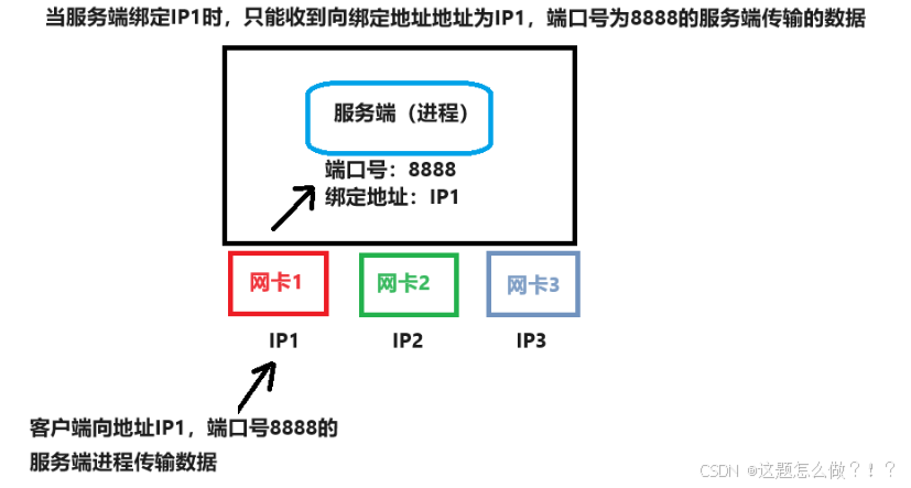 但是对于一台主机而言,服务端进程的端口号是唯一的,但是IP地址却不止一个。当需要接收来自多个接口的连接请求时,将绑定地址设置为