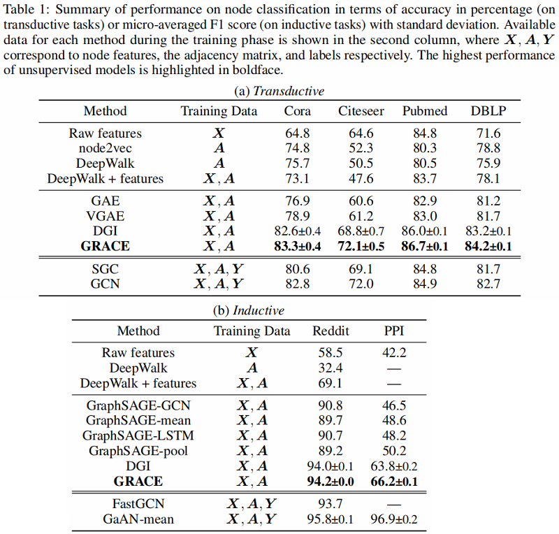 - 最后,我们利用 6 个流行的公共基准数据集,在常用的线性评估协议下,对转换和归纳节点分类进行了全面的实证研究。GRACE 始终优于现有的方法,我们的无监督方法在转换任务上甚至超过了有监督的方法,展示了它在现实应用中的巨大潜力。