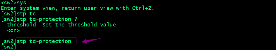 提示:所谓TC保护是指我们配置交换机在单位时间内处理单位数量的TC报文,如果超出配置单位时间处理的tc报文个数,对应交换机就处理TC报文;