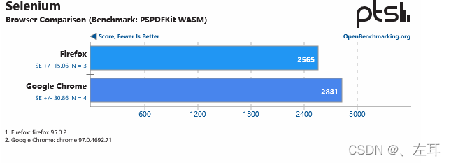参考链接:Firefox 95 vs. Chrome 97 Browser Performance On Linux - Phoronix