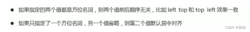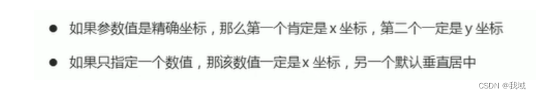 如果指定的两个值是精确单位和方位名词混合使用,则第一个值是x坐标,第二个值是y坐标。