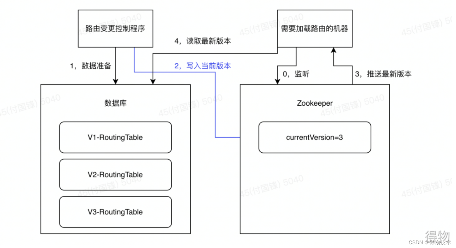 当需要进行路由变更时,会由路由变更控制程序将数据写入数据库中,并且定义版本号。