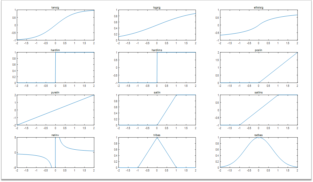 | elliotsig | Elliot S形函数 | Elliot sigmoid transfer function. |