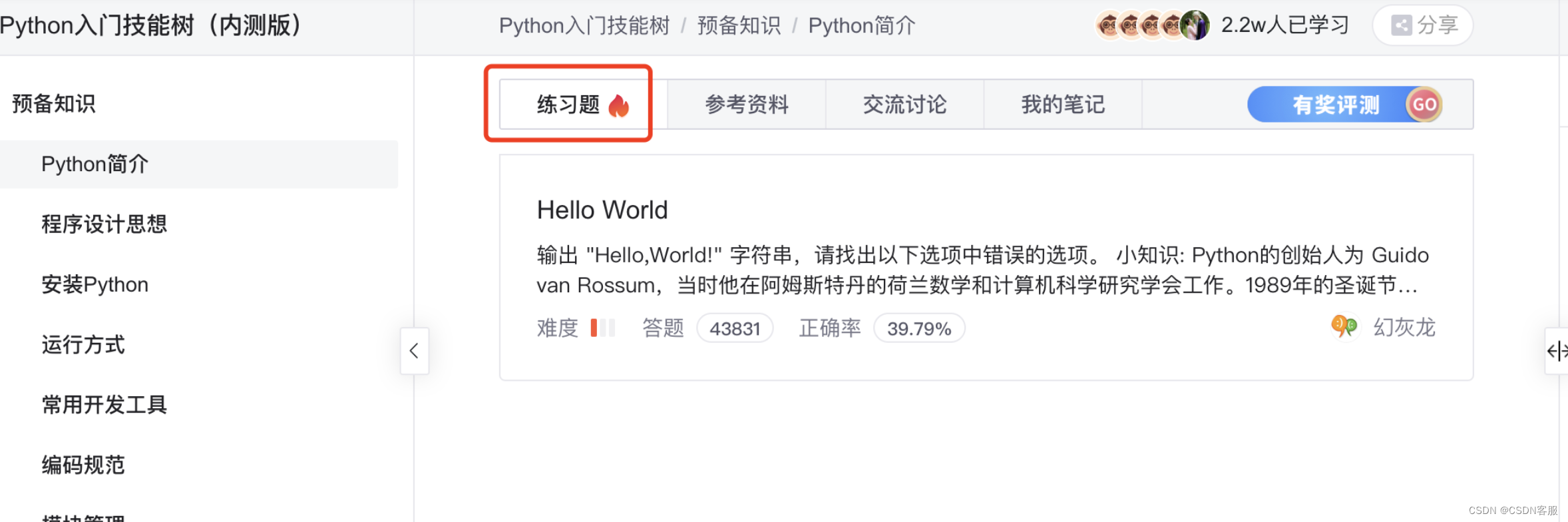 技能树入口:Python简介-预备知识-CSDNPython入门技能树